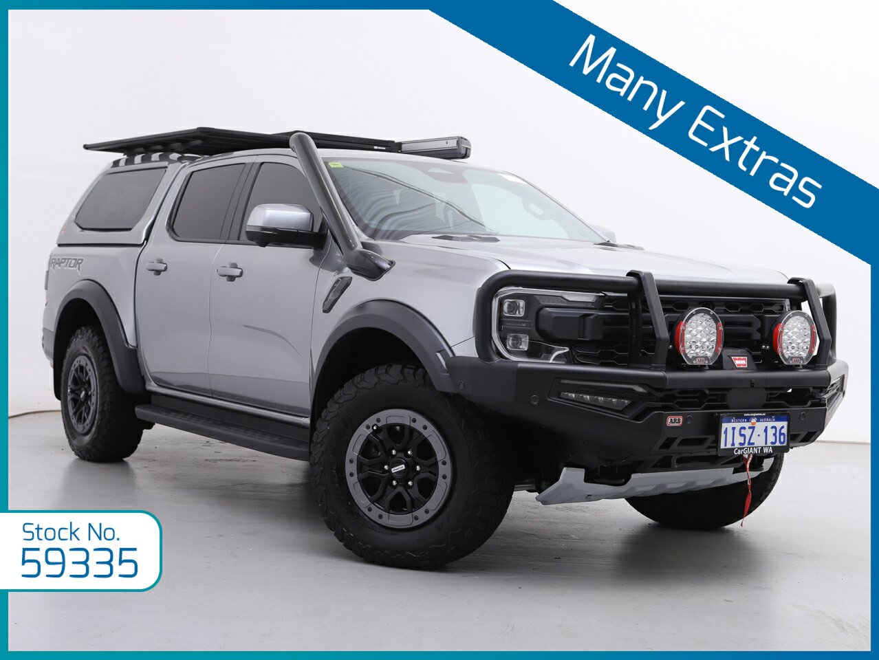 The Raptor packed with extras including! Bullbar, ARB central locking canopy, Fridge slide, Roof racks, Spotties, Winch, Dual Battery system, Snorkel, Awning plus the standard Raptor features 3.0L Twin-Turbo V6 Petrol Engine10-Speed Sports Automatic TransmissionAdvanced Full-Time 4WD SystemFOX 2.5" Live Valve Internal Bypass Racing SuspensionSelectable Drive Modes including BajaBold Raptor Styling with Signature Grille & Wide Trac kPremium Leather & Suede Raptor Sports Seats12" Touchscreen with Apple CarPlay & Android Auto12.4" Digital Driver Display360° Camera & Parking SensorsAdaptive Cruise Control & Advanced Driver Assistance Premium Sound System Alloy Wheels & All-Terrain Tyres