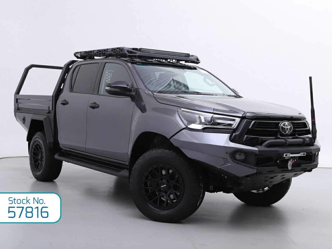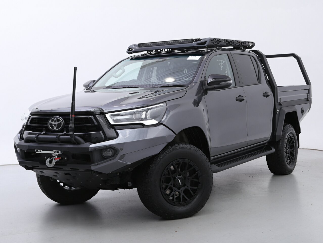 BEAST MODE HILUX SR5! This is not your average Hilux, good luck finding another like this! One of a kind custom build that has had thousands spent and has been loved from day one. One private extremely fastidious owner from new, full service history, and never even taken off road. Presents in immaculate condition and ready for anything. Built properly – features a fully custom aluminium chassis-mounted tray and toolboxes by Hazard Engineering, with double folded guards, double tapered toolboxes, tapered back light panel, custom tailgate sides, tube style headboard, rear 1.5m trundle drawer, removable ladder bar, and quick release tie down rail. Finished with graphite colour wings and black underbody plate, this tray setup is as tough as they come. Underneath it has been upgraded with Bluemax front coil springs 70–100kg and rear leaf springs 350–500kg, Lovells front and rear shocks, full fitting kit with shackles pins bushes and U-bolts, Cooper LT265 all terrains, Dirty Life rims and custom tinted windows, Trailmax roof rack system, Rhino powder-coated light mounting bar, Roadvision Stealth 30-inch LED bar, Roadvision Stealth 21-inch bar, Roadvision harnesses, Lightforce ROK10 spot beams, dual and single custom switches, triple LED light combo, plus side and rear LED work lights, Rhino 12,500lb synthetic rope winch, and this rig is set for anything. Inside - Apple CarPlay and Android Auto, GPS navigation, blind spot monitoring, Thinkware 4K dash cams front and rear, reversing cameras, Bedrock floor mats front and rear, GME XRS UHF with stubby antenna, Toyota RJ45, and custom switches for all accessories. This Hilux SR5 is the full package. Do not miss this!